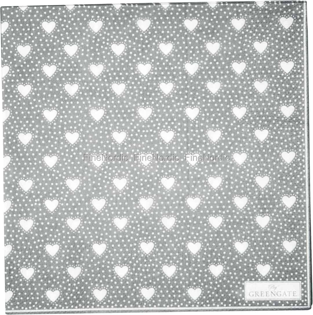 Mit den grau-weißen Papierservietten Penny Grey ist der Esstisch schnell liebevoll eingedeckt. Die großen Einwegservietten werden in einem 20er Set geliefert und sind im Alltagsleben, oder bei einem romantischen Dinner zu Zweit und auch bei Feierlichkeiten bestens zu gebrauchen. Die Papierservietten sind mit weißen Pünktchen und Herzchen übersät und das bekannte GreenGate Label ist auch darauf zu sehen. Sie können die herzigen Servietten mit dem Penny Grey Porzellan und mit vielen anderen GreenGate Serien sehr schön kombinieren.