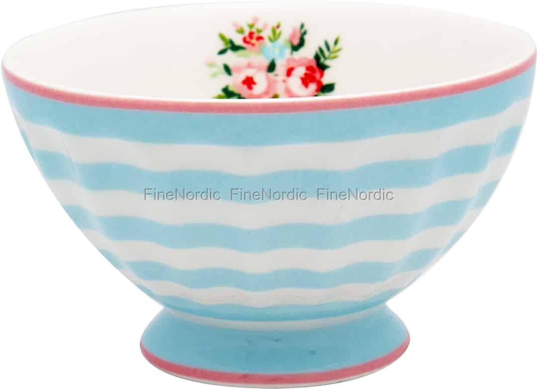 Die Nellie Pale Blue Schüssel ist Teil von GreenGates 1. limitierter Zwischensaison-Kollektion 2020 und nur kurzzeitig erhältlich. Ihre blassblauen Streifen auf dem hellen Hintergrund sind das erste, was Ihnen bei dieser French Bowl in das Auge springen wird. Bei näherer Betrachtung allerdings entdecken Sie auch den bezaubernden Blumenstrauß, der im Inneren dieser mittelgroßen Schale versteckt ist. Das Porzellan Schüsselchen hat ein Fassungsvermögen von 150 ml und ist spülmaschinenfest. Es ist die perfekte kleine Snackschale oder auch Servierschälchen, wenn Sie Ihrem Gast einen hausgemachten Dip oder Sauce kredenzen möchten. Das klassische French Bowl Design in Kombination mit dem zeitlosen Streifenmuster und dem kleinen Überraschungsstrauß in der Innenseite, machen diese Porzellanschale wirklich unwiderstehlich. Die limitierte Nellie Pale Blue French Schüssel von GreenGate kann gut mit den anderen Nellie Pale Blue Geschirrartikeln sowie den Abigail White Geschirrteilen kombiniert werden.