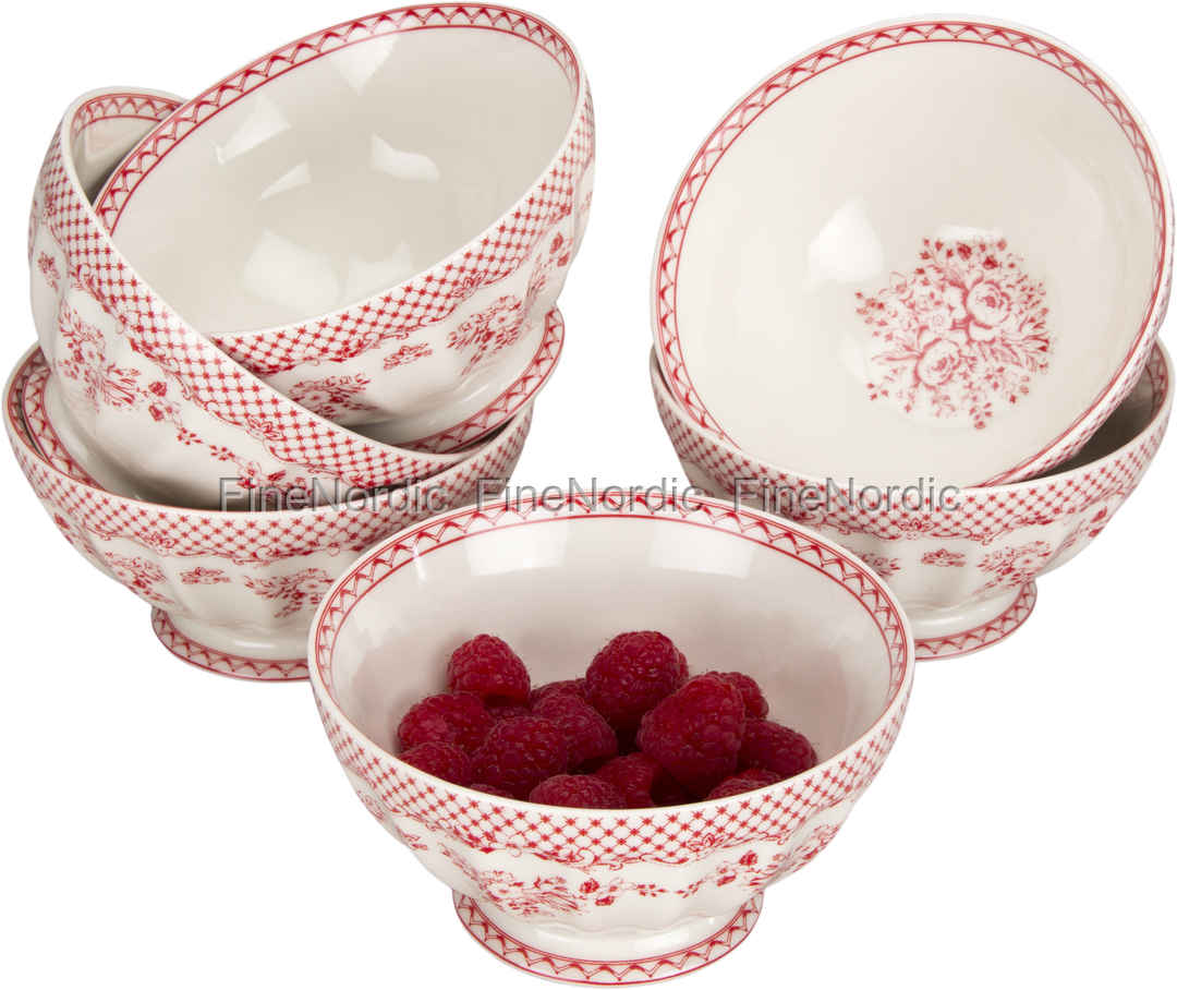 GreenGate Schüssel - French Bowl - Stephanie Red XLarge - 6er Set