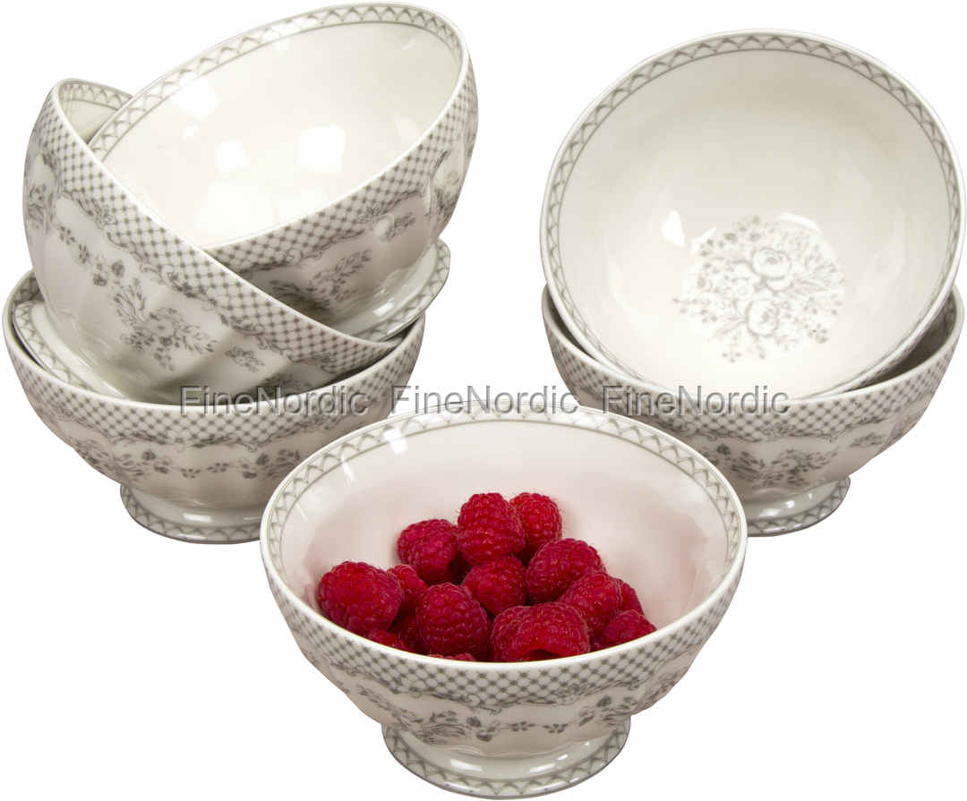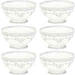Sind Sie auf der Suche nach neuen Schüsseln für Ihre ganze Familie? Dann ist dieses Set von GreenGate, das 6 Stephanie Warm Grey Schüsseln beinhaltet, perfekt für Sie! Das graue Blumenmuster der Schüsseln wird Ihr Frühstück gleich viel angenehmer machen. Verwenden Sie die Schüsseln, wenn Sie Ihre Freunde zum Bruch einladen wollen und jeder wird Sie fragen wo sie dieses wunderschöne Geschirr gekauft haben. Sie können die Schüsseln für etwas Salat, Suppe oder ein leckeres Dessert, sowie zum Servieren von Obst oder Snacks benutzen. Die Schüsseln werden neben anderem Vintage-Porzellan aus der Stephanie-Serie gut aussehen, können natürlich aber auch mit schlichterem Geschirr kombiniert werden.