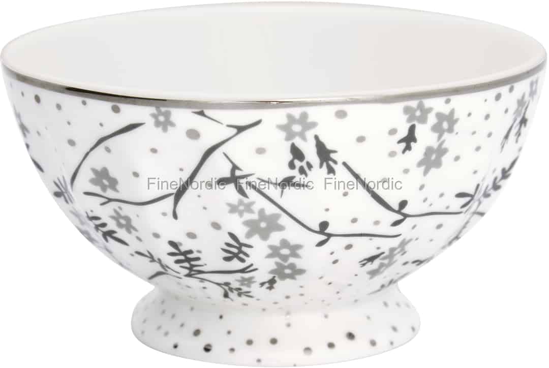 GreenGates French Bowl Amira White ist in der Größe XL erhältlich und mit einem Muster aus zarten Zweigen in verschiedenen Grautönen verziert. Diese Stoneware Schale kann als Suppenschüssel, Salatschüssel sowie für Ihre Lieblingsfrühstücksflocken verwendet werden. Füllen Sie sie mit ein paar Leckereien und stellen Sie sie auf den Tisch, und so können sich Ihre Gäste selbst an den Süßigkeiten bedienen.
