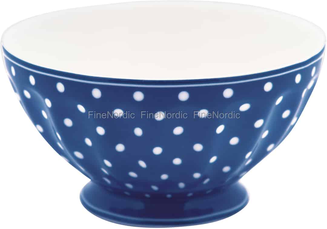 Mögen Sie gepunktete Muster? Dann werden Sie diese XL French Bowl Schüssel Spot Blue von GreenGate lieben. Der blaue Hintergrund ist mit weißen Punkten verziert und die Schale fügt dem Tisch etwas Farbe und gute Laune hinzu. Die XL French Bowl hat ein Fassungsvermögen von 400 ml und ist sowohl spülmaschinen- als auch mikrowellengeeignet. Pudding, Obstsalat, Müsli und mehr können darin serviert werden. Die Spot Serie von GreenGate ist sehr beliebt und lässt sich problemlos mit anderen GreenGate Serien oder anders farbigen Spot Produkten kombinieren. Decken Sie Ihren Esstisch so interessant und einladend, wie Sie es mögen, und wir sind sicher, dass Ihre Gäste begeistert sein werden.