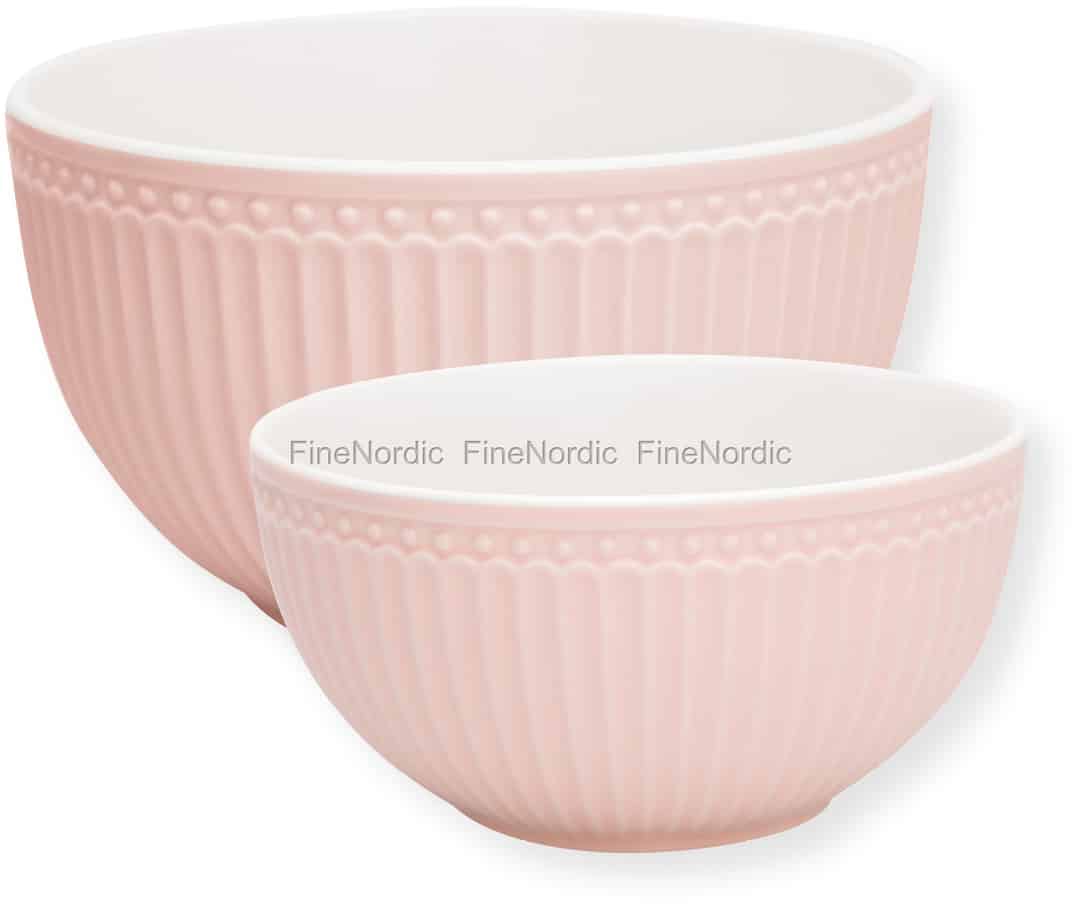 Was ist besser als eine Schale? Genau, zwei Schalen. Und es ist noch schöner, wenn sie in zwei verschiedenen Größen erhältlich sind, sodass Sie sie für verschiedene Zwecke verwenden können. Genau wie dieses Alice Pale Pink 2er Servierschalen Set von GreenGate. Die runden Schalen sehen mit ihrem hellrosa Reliefdesign auf der Außenseite und der weißen glatten Innenseite nicht nur richtig gut aus, sie sind auch sehr praktisch. Servieren Sie ein paar Chips in einem und etwas Popcorn in dem anderen oder vielleicht etwas Salat in einem und etwas Obst in dem anderen. Die Alice Pale Pink Servierschüsseln machen sich sehr gut neben dem anderen Alice Pale Pink Porzellan und können auch mit der Stoneware aus vielen anderen GreenGate Serien kombiniert werden.