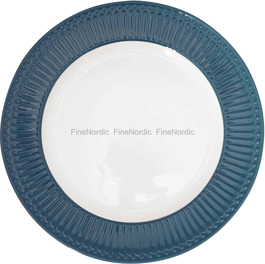 Der Ocean Blue Alice Teller von GreenGate sieht mit seinem blauen Rand und der kontrastreichen weißen Mitte sehr ansprechend aus. Sie können diesen runden Teller gut mit Stoneware Waren aus vielen anderen GreenGate Serien kombinieren. Wenn Sie den Tisch für ein formelles 3-Gänge-Menü decken oder an Festtagen, dann können Sie dem Tisch, mit Tellern aus verschiedenen GreenGate Serien, eine extra Portion Farbe und Interesse verleihen. Die ozeanblauen Alice Teller von GreenGate eignen sich nicht nur hervorragend für besondere Anlässe, sondern auch bestens für den Alltag.
