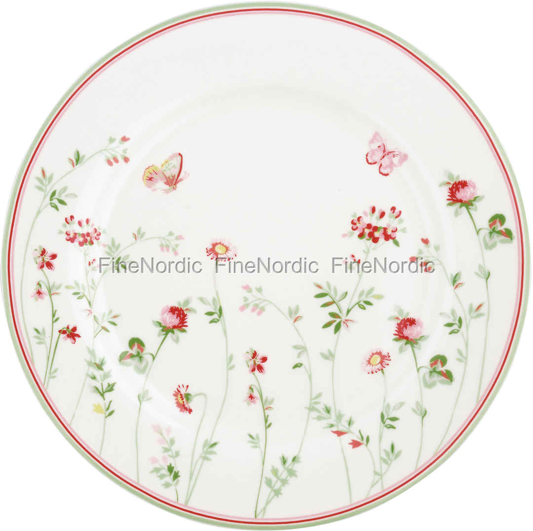 Eine hübsche Blumenwiese, darüber flattern zwei glückliche Schmetterlinge, hach, bei dem Anblick des GreenGate Camille White Speisetellers gerät man schnell ins Träumen. Das farblich wunderschön auf einander abgestimmte Design entzückt nicht nur GreenGate Fans, auch andere Personen, die ganz neu in der GreenGate Welt sind. Der attraktive Teller ist gut mit einfarbigen roten, weißen, hellgrünen und rosafarbenen Geschirrstücken zu kombinieren, aber auch zusammen mit den anderen Geschirrteilen der Camilla White Serie ist er ein Highlight auf dem Tisch. Ein weiteres Meisterstück aus dem Hause GreenGate.