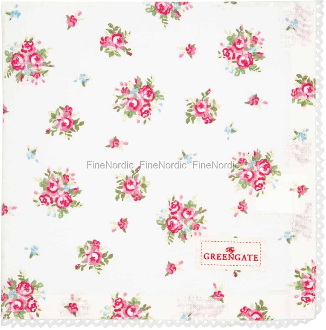 Wenn Sie den Tisch für Ihre Gäste zum Abendessen decken, vervollständigen Servietten nicht nur das Gesamtbild, sie sind dazu auch sehr nützlich. Die Abigail White Stoffserviette hält die Mundwinkel sauber und beseitigt kleine Kleckereien. Die hübsche Baumwollserviette ist mit einem wunderschönen Rosenmuster verziert und wird von einer Spitzenkante umrahmt. Das aufgenähte GreenGate Etikett lässt keinen Zweifel daran, aus welchem Hause diese Stoffserviette stammt. Legen Sie sie neben Abigail White Porzellan oder kombinieren Sie sie mit anderen GreenGate Porzellanserien. Die Abigail White Stoffserviette sieht genauso gut aus wie sie nützlich ist.