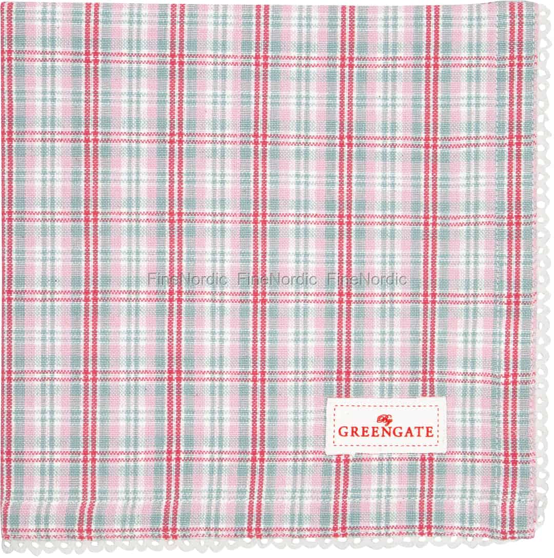 GreenGate Stoffserviette mit Spitze Beth Check Raspberry