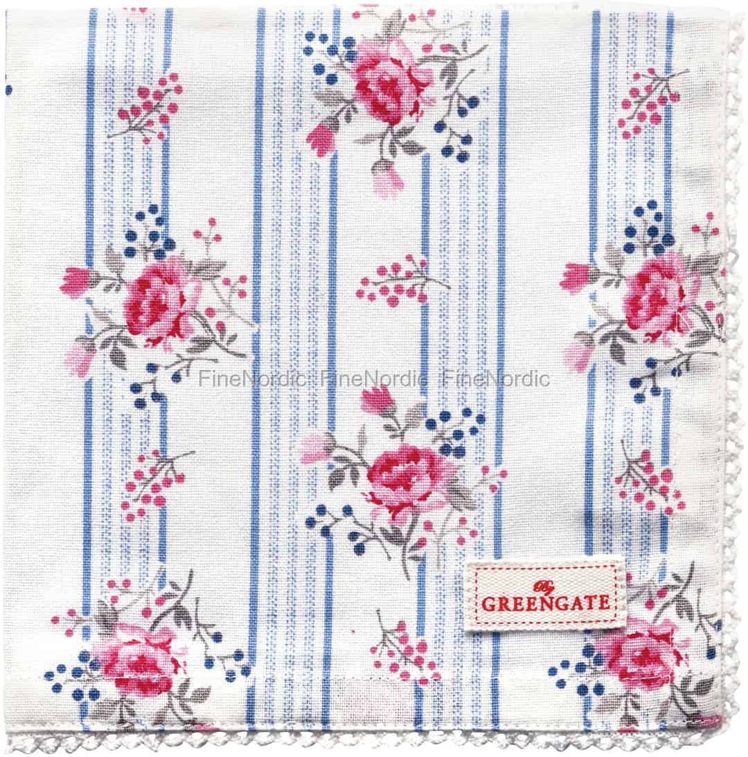 Raus mit dem Alten - rein mit dem Neuen! Ist es mal wieder an der Zeit, ein paar alte langweilige Stoffservietten loszuwerden und sich ein paar hübsche neue zuzulegen? Dann schauen Sie sich gerne mal diese Fiona Pale Blue Stoffserviette an. Sie ist mit einem bezaubernden Blumenmuster auf einem blau-weiß gestreiften Hintergrund verziert und wird von einem zarten Spitzenrand eingefasst. Die weiche Baumwolle, das schöne Design und die Tatsache, dass sie ganz einfach bei 40 ° C zu waschen ist falls sie verschmutzt ist, machen diese Serviette zu etwas Besonderem. In unserem Webshop finden Sie eine große Auswahl an fantastischen GreenGate Servietten in verschiedenen Farben, Mustern und Größen.