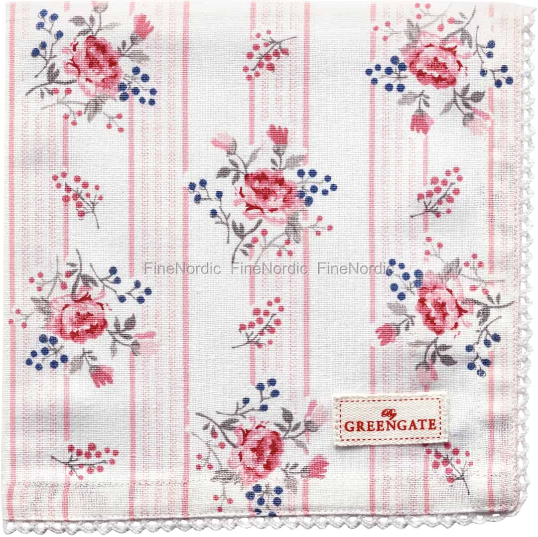 Gefällt Ihnen GreenGates Fiona Serie genauso gut wie uns? Dann darf diese bezaubernde Stoffserviette nicht in der Sammlung fehlen. Das Fiona Pale Pink Muster besteht aus hübschen Blumensträußen auf einem hellrosa-weiß gestreiften Hintergrund. Die gut aussehende Serviette wird dazu von einem reizenden Spitzensaum eingerahmt. Sie ist aus hochwertiger Baumwolle gemacht und kann bei 40 ° C gewaschen werden. Verleihen Sie Ihrem Tisch etwas Farbe und Stil, mit dieser verführerischen Stoffserviette von GreenGate. Kombinieren Sie sie mit dem Fiona Pale Pink und dem Fiona Pale Blue Geschirr und Ihre Gäste werden von dem wunderschön gedeckten Tisch begeistert sein. Bei uns können Sie alle fantastischen Fiona Produkte entdecken.