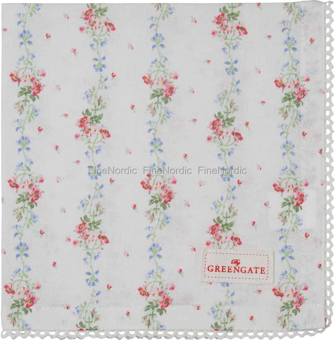 Verleihen Sie dem Tisch etwas Sommer- oder Frühlingsfeeling mit dieser äußerst hübsch aussehenden Sinja White Stoffserviette aus GreenGates 2. limitierter Zwischensaison-Kollektion 2020. Die hübsche Blumenserviette wird daher auch nur für kurze Zeit erhältlich sein. Sie ist mit einem schönen Spitzenrand eingefasst und das aufgenähte GreenGate Label verleiht ihr den letzten Schliff. Sie können sie als normale Stoffserviette oder zum Auskleiden Ihres Brotkorbs verwenden oder aber auch als provisorisches Tischset nutzen. Wir lieben einfach die hübschen pastellfarbenen Farbkombinationen auf dieser hochwertigen Baumwollserviette. Sie können Sie zusammen mit dem Sinja White Teller verwenden oder sie mit Geschirrteilen von anderen klassischen GreenGate Porzellanserien kombinieren.
