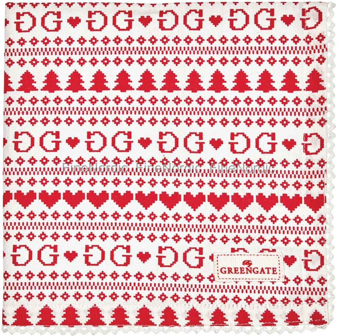 GreenGate Stoffserviette - Napkin with Lace December Red