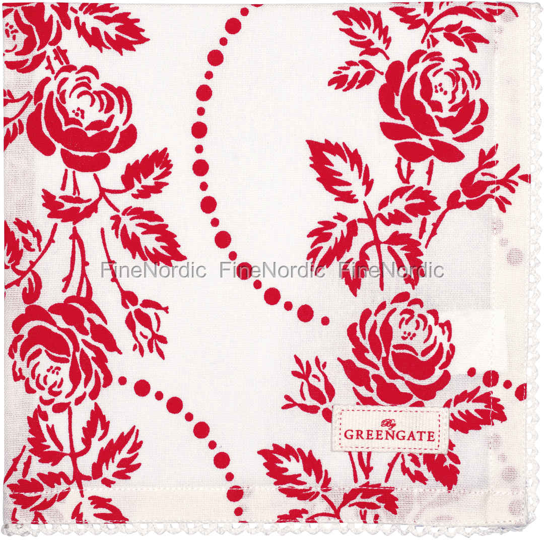 GreenGate Stoffserviette Napkin With Lace Fleur Red