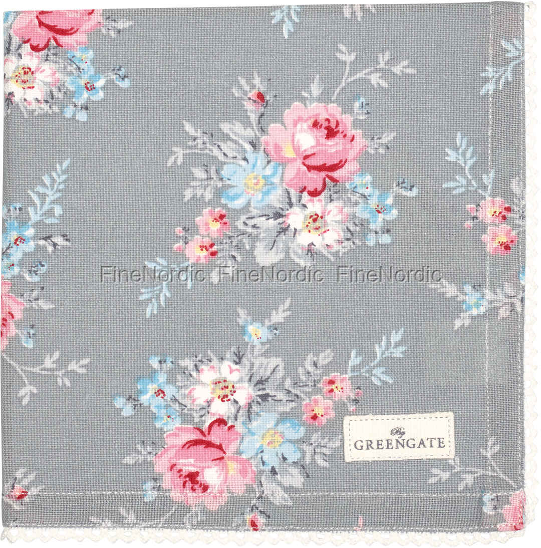 Bist du ein echter GreenGate-Sammler? Dann ist diese wunderschöne GreenGate Stoffserviette mit Spitze namens Marie Pale Grey ein Muss für Ihre Sammlung! Das schöne rosa, blau und grau gefärbte Blumenmuster auf dem grauen Hintergrund und der niedliche Spitzenrand sehen einfach toll aus. Das malerische Design ist so schön, dass man die Serviette fast nicht benutzen möchte. fast nicht die Serviette benutzen möchte. Benutzen Sie die Stoffserviette täglich oder für besondere Anlässe.