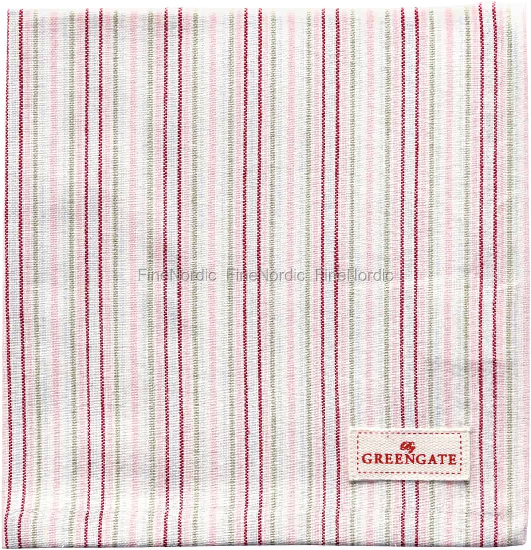Die Silvia Stripe White Stoffserviette ist nicht nur weniger verschwenderisch als eine Papierserviette, sondern sieht dazu auch noch super aus. Streifen lagen schon immer voll im Trend und somit auch diese poppige Silvia Stripe White Serviette von GreenGate. Sie können sie neben einfarbiges oder auch blumiges Geschirr legen, um so einen schönen Kontrast auf dem Tisch entstehen zu lassen. Sie können damit alle verschiedenen Serviettenfaltstile ausprobieren oder sie in einen Brotkorb legen. Packen Sie selbstgebackene Leckereien darin ein und verwenden Sie sie als ein tolles Geschenk für einen GreenGate Fan. Schauen Sie sich auch gerne mal all die anderen Textil- und Porzellanprodukte an, die wir mit dem gleichen fantastischen Muster hier in unserem Webshop anbieten.
