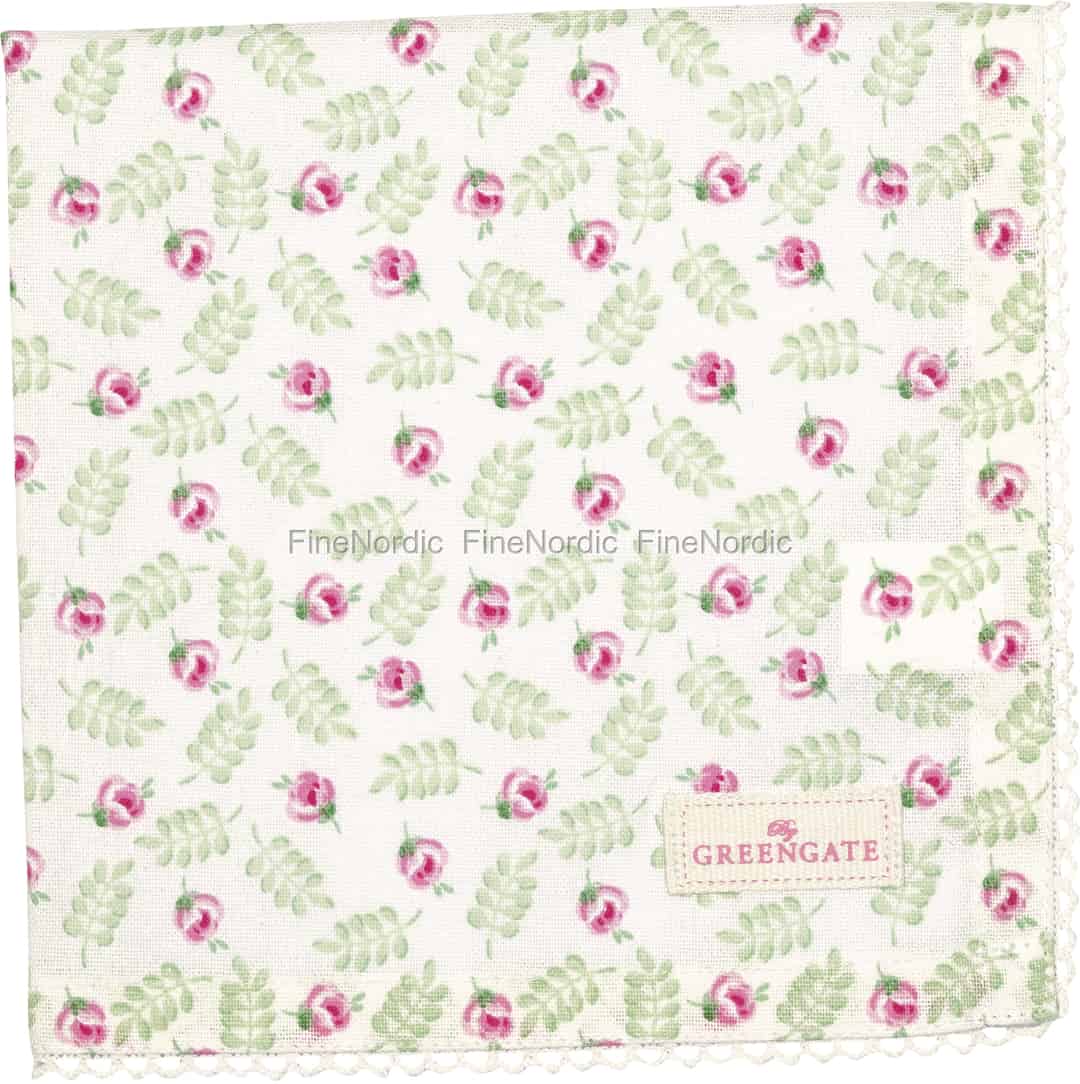 Diese raffinierte Stoffserviette ist die perfekte Wahl für besondere Anlässe und Frühlingsfeiern, als auch für den Alltag. Die Lily Petit White Serviette mit Spitze zeigt ein attraktives Blüten- und Blattmuster und entlang des Randes sieht man eine feine Spitzenborte. Die Serviette aus 100% Baumwolle misst im aufgefalteten Zustand ganze 40 cm x 40 cm. Verschönern Sie den Esstisch mit einer hübsch gefalteten Serviette. Im Internet finden Sie hunderte verschiedene Falttechniken. Oder rollen Sie die Serviette einfach zusammen und legen Sie sie mit einem schönen Serviettenring auf die Mitte Ihres Tellers. Decken Sie Ihren Partytisch richtig festlich mit dieser Lily Petit White Serviette von GreenGate.