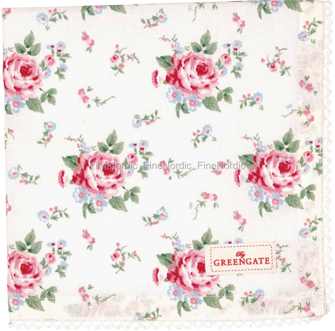 Die Marley Petit White Stoffserviette mit Spitze von GreenGate ist mit einem wunderschönen Blumendesign geschmückt, welches von einer attraktiven Spitzenborte umrahmt ist. Das romantische Blumenmuster und die verführerischen Farbkombinationen machen diese Stoffserviette einfach unwiderstehlich. Die Serviette aus 100% Baumwolle ist ein attraktives Tischaccessoire, das als normale Serviette oder als Auskleidung des Brotkorbs verwendet werden kann. Wenn Sie diese hübsche Stoffserviette mögen, dann werfen Sie doch bitte auch einen Blick auf alle anderen GreenGate Stoffservietten, die wir zur Verfügung haben. Wir bieten eine große Auswahl an GreenGateServietten in unserem Webshop an.