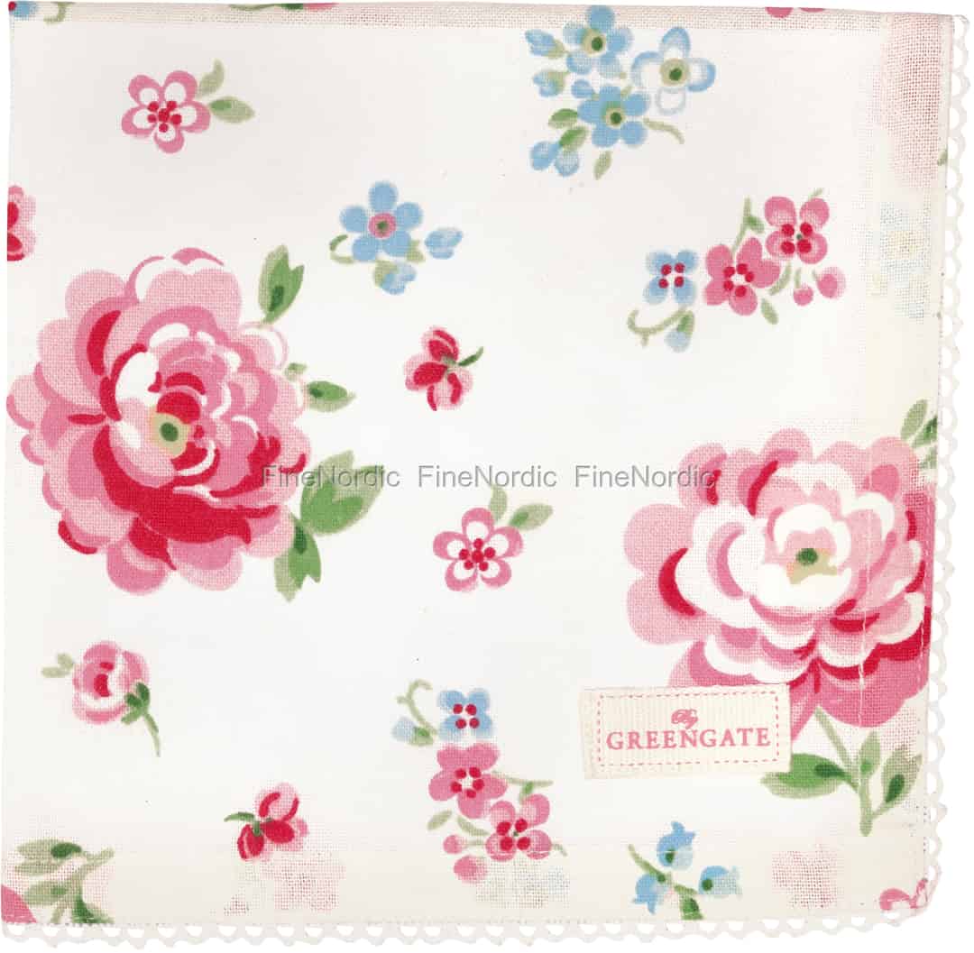 Die Meryl Mega White Stoffserviette von GreenGate zeichnet sich durch ein wunderschönes Blumendesign aus, welches von einer attraktiven Spitzenborte umgeben ist. Das romantische Blumenmuster und die verführerische Farbkombinationen machen diese Stoffserviette einfach unwiderstehlich. Die Serviette aus 100% Baumwolle ist ein attraktives Tischaccessoire, das als reguläre Serviette oder als Brotkorbserviette verwendet werden kann. Wenn Sie diese hübsche Stoffserviette mögen, dann werfen Sie doch bitte auch einen Blick auf all die anderen gut aussehenden GreenGate Stoffservietten, die wir in unserem Sortiment haben. In unserem Webshop bieten wir eine große Auswahl an GreenGate Stoffservietten an.