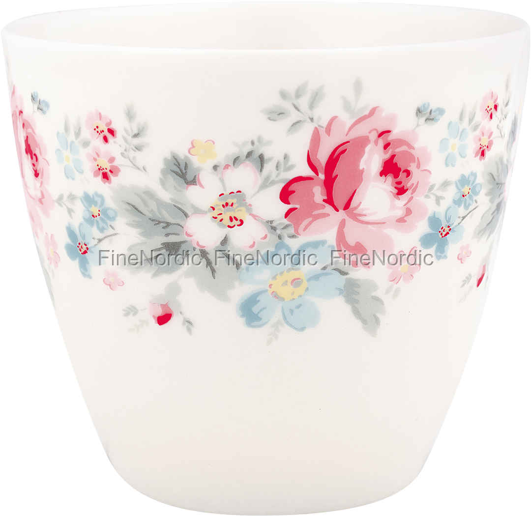 Hier ist ein weiteres Produkt aus GreenGates Marie Serie. Das schöne rosa, blau und graue Blumenmuster auf dem weißen Hintergrund macht die Marie Pale Grey Latte Cup zu einem echten Hingucker. Die Latte Cups werden normalerweise für Kaffee oder Tee verwendet, aber natürlich können Sie auch etwas Eis oder Obst aus dieser Latte Cup essen. Das Marie Pale Grey Design sieht gut zusammen mit anderen Blumenmustern aus, kann aber auch mit schlichterem Porzellan kombiniert werden.