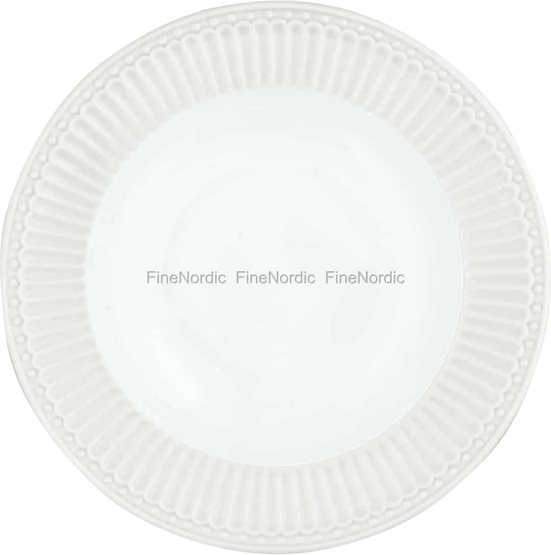 Wir mögen einfach alles an diesem tiefen weißen Teller aus GreenGates beliebter Alice Serie. Die schöne runde Form, das markante Alice Relief und die klassische weiße Farbe zeichnen diesen tiefen Teller aus. Sie können ihn als Suppenteller verwenden, oder um Eintopf oder Chili zu essen, oder auch für viele andere Speisen. Das Beste ist, dass Sie ihn aufgrund seiner eintönigen weißen Farbe mit Stoneware aus allen anderen GreenGate Serien kombinieren können.