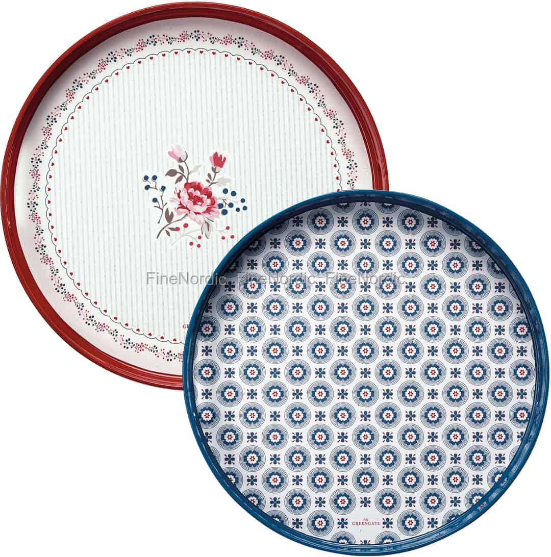 GreenGate Tablett Fiona Pale Blue Round 2er Set