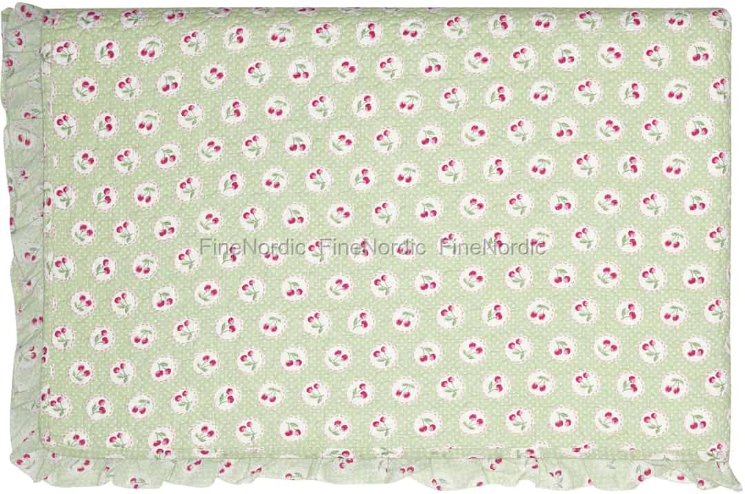 Wer würde sich wohl nicht unter diese Cherry Berry Pale Green Tagesdecke von GreenGate kuscheln wollen? Die Bettdecke misst 100 cm x 140 cm und ihr blassgrüner Hintergrund ist mit einem fröhlichen Kirschmuster bedeckt. Die Tagesdecke ist aus 100% Baumwolle gefertigt und sie verbreitet eine sommerliche Atmosphäre im ganzen Raum. Wenn Ihnen dieses Muster genauso gut gefällt wie uns, dann werfen Sie doch mal einen Blick auf alle anderen fantastischen Cherry Berry Pale Green Produkte, die wir anbieten. Die Tagesdecke finden Sie außerdem auch in einer größeren Version direkt hier in unserem Webshop.