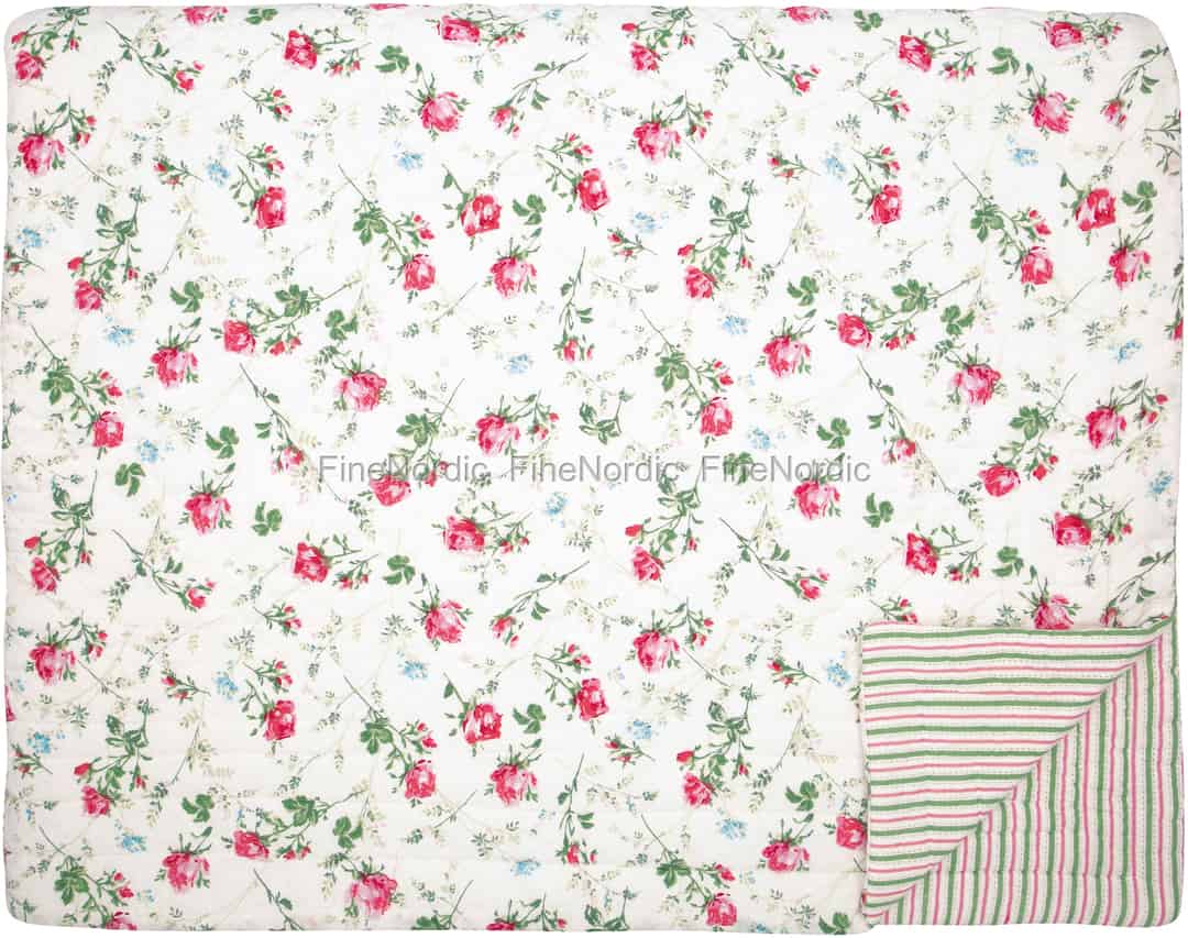 Verleihen Sie Ihrem Schlafzimmer eine romantische und sommerliche Atmosphäre mit dieser Constance White Tagesdecke von GreenGate. Das wunderschöne Rosenmuster dieser Decke verschönert einen Raum und wenn Sie mal Lust auf etwas anderes verspüren, dann können Sie sie einfach auf die gestreifte Seite umdrehen. Möchten Sie noch weitere Constance White Produkte im Raum haben? Dann kann die Bettdecke gut mit dem Constance White Kissenbezug oder dem Constance White Sitzkissen ergänzt werden, um nur ein paar wenige Möglichkeiten zu nennen. Schauen Sie sich doch mal all die wunderbaren Constance White Produkte an, die wir anzubieten haben. Sie finden dieses fantastische Muster nicht nur auf Textilien, sondern auch auf Glas-, Bambus- und Porzellanwaren.