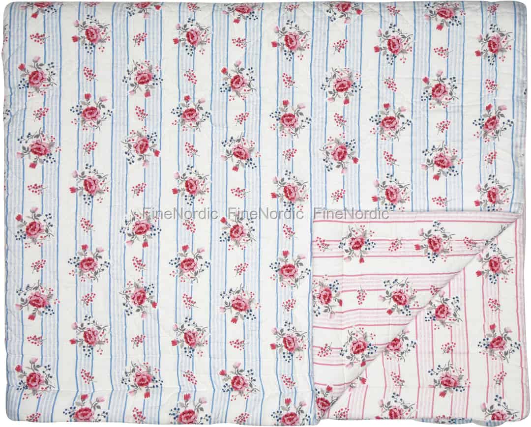 Eine schöne Bettdecke für ein Kinderbett ist diese Fiona Pale Blue Bettdecke von GreenGate. Sie hat auf beiden Seiten das gleiche hübsche Fiona Blumenmuster, jedoch hat eine Seite einen hellrosa gestreiften Hintergrund, die andere einen hellblau gestreiften Hintergrund. Sie besteht aus hochwertiger Baumwolle und fühlt sich auch sehr gut an. Sie können sie gut mit anderen Produkten der Fiona Serie von GreenGate kombinieren. Die Fiona Pale Blue Bettdecke ist dazu auch in zwei größeren Größen erhältlich.