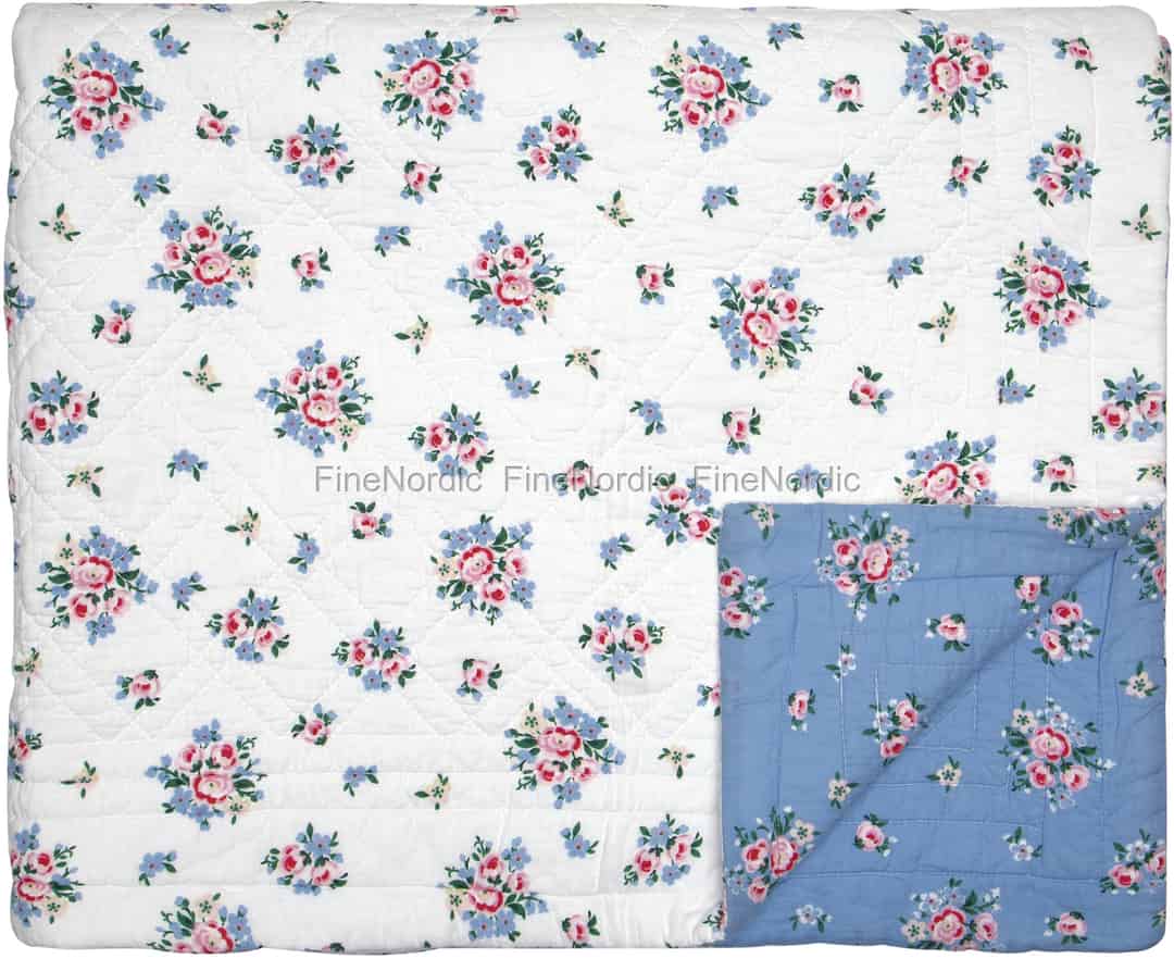 Decken Sie Ihr Bett mit dieser traumhaften Nicoline Dusty Blue Tagesdecke von GreenGate ab. Das gleiche fantastische Blumenmuster ist auf der einen Seite auf einem staubblauen Hintergrund und auf der anderen Seite auf einem hellen Hintergrund zu sehen. Welche Seite oben liegt, entscheiden Sie und wenn Sie Lust auf eine Veränderung haben, dann drehen Sie die Bettdecke einfach um. Die Tagesdecke besteht aus 100% Baumwolle und misst 250 cm x 260 cm. Sie ist dazu auch in zwei kleineren Größen erhältlich. Entdecken Sie sie diese, und auch die passenden Kissenhüllen, gleich hier in unserem Webshop.