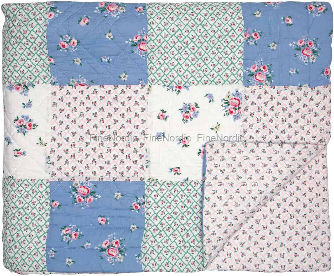 Eine schöne Tagesdecke für das Kinderzimmer oder das Einzelbett im Gästezimmer ist diese Nicoline White Patchwork Decke von GreenGate. Die Bettdecke ist auf der einen Seite mit verschiedenen Blumenflecken verziert und ist auf der anderen Seite mit einem wunderschönen Rosenmuster geschmückt. Sie besteht aus hochwertiger Baumwolle und sie kann bei 30 ° C gewaschen werden. Passende Kissenbezüge finden Sie auch in unserem Webshop. Dieser Quilt ist außerdem auch in einer größeren Größe erhältlich.