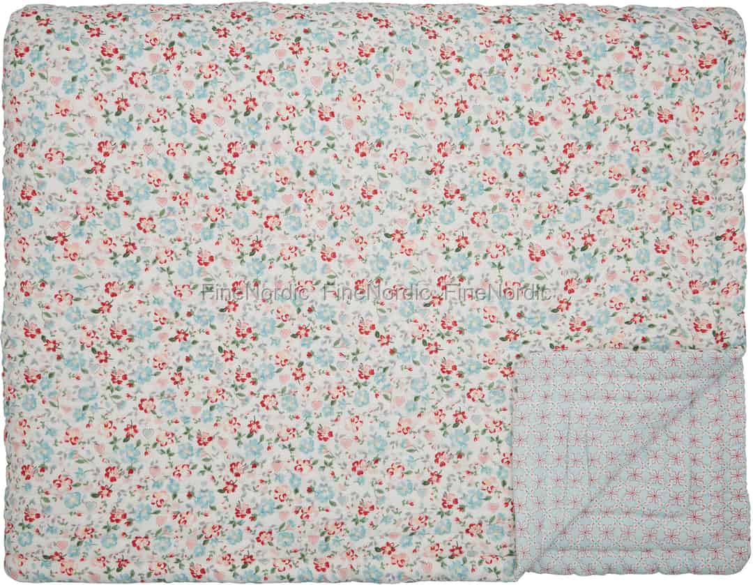 Die Merla White Tagesdecke, aus GreenGates limitierter Zwischensaison Kollektion, ist mit einem hübschen, pastellfarbenen Blumenmuster geschmückt. Wenn man die blumige Steppdecke umdreht, dann sieht man das geometrische Harper Blumenmuster, das die andere Seite als All-Over Muster verziert. So kann mal die Vorder-, oder aber die Rückseite der hochwertigen Baumwolldecke oben liegen, ganz nach Lust und Laune. Der florale Baumwollquilt hübscht nicht nur das Bett auf, er lässt den Raum auch gleich noch einladender und gemütlicher ausschauen. In einem im Landhausstil eingerichteten Zuhause kommt die Merla White Tagesdecke von GreenGate ganz besonders gut zur Geltung.