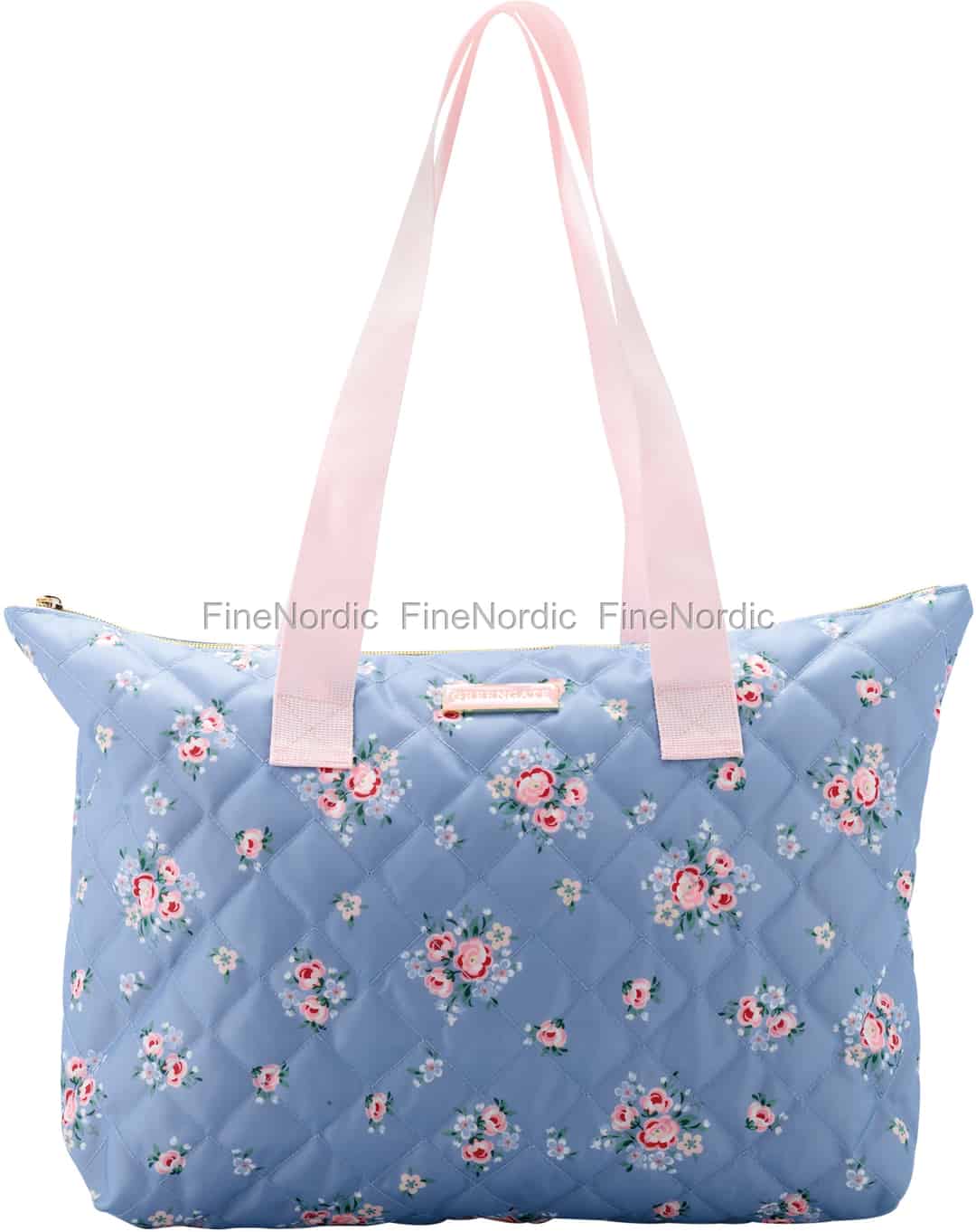 Die Nicoline Dusty Blue Tasche von GreenGate ist eine tolle Kombination aus wunderschönen Farben und Muster. Der staubig blaue Hintergrund der kleinen Tasche ist mit bezaubernden Blumensträußen verziert und die einfarbigen rosa Henkel bieten einen schönen Kontrast zum Rest der Tasche. Nehmen Sie darin ein paar unverzichtbare Dinge mit, wenn Sie zum Beispiel in den Park, in den Zoo oder zum Kaffeeklatsch mit den Freundinnen gehen. Bewahren Sie alle Gegenstände sicher in der Tasche auf, indem Sie sie mit dem Reißverschluss schließen. Das Innere dieser kleinen Tasche ist rosa mit weißen Tupfen und dort ist auch eine zusätzliche Tasche mit Reißverschluss vorhanden. Sie ist ein wunderschönes Muttertagsgeschenk oder Geburtstagsgeschenk für einen GreenGate Liebhaber.