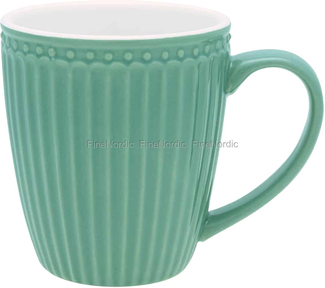 Diese Alice Dusty Green Tasse aus der Everyday Serie von GreenGate ist sowohl praktisch als auch sehr schön anzusehen. Sie zeichnet sich durch ihre hübsche Farbe und geripptes Design aus und ist sowohl spülmaschinen- als auch mikrowellenfest. Das ist sehr praktisch, vor allem im hektischen Alltag. Die Außenseite der Tasse ist staubig grün und die Innenseite ist weiß, was für einen interessanten Kontrast sorgt. Durch ihren großen Henkel ist sie leicht zu halten und sie hat eine Kapazität von 300 ml. Genießen Sie eine schöne Tasse Tee oder Kaffee mit der Henkeltasse Alice Dusty Green. Sie können sie mit verschiedenfarbigen Alice Geschirrteilen oder mit Geschirr von GreenGates gemusterten Serien kombinieren. Lassen Sie Ihren Tisch so farbenfroh oder monochrom aussehen, wie Sie es bevorzugen. Mit GreenGates Geschirr können Sie einen Tisch decken, der so individuell ist wie Sie selbst.