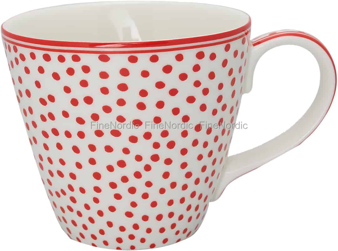 Diese heißgeliebte Dot White Tasse aus der limitierten GreenGate Edition hat ein echtes Potenzial, schon bald Ihre Lieblingstasse zu werden. Selbst den größten Morgenmuffel versetzt diese Tasse mit ihren fröhlichen roten Punkten in gute Stimmung. Genießen Sie Ihr heißes Lieblingsgetränk und starten Sie gut in den Tag. Die Dot White Tasse hat ein Fassungsvermögen von 300 ml und ist dank des reichlich großen Griffs ganz einfach zu halten und zu tragen. Sie können sie mit den Dot Red und Dot White Produkten von GreenGate kombinieren, um ein noch farbenfroheres und interessanteres Tischbild zu gestalten. Die Tasse Dot White von GreenGate ist auch eine schöne Geschenkidee für einen GreenGate Tassensammler.