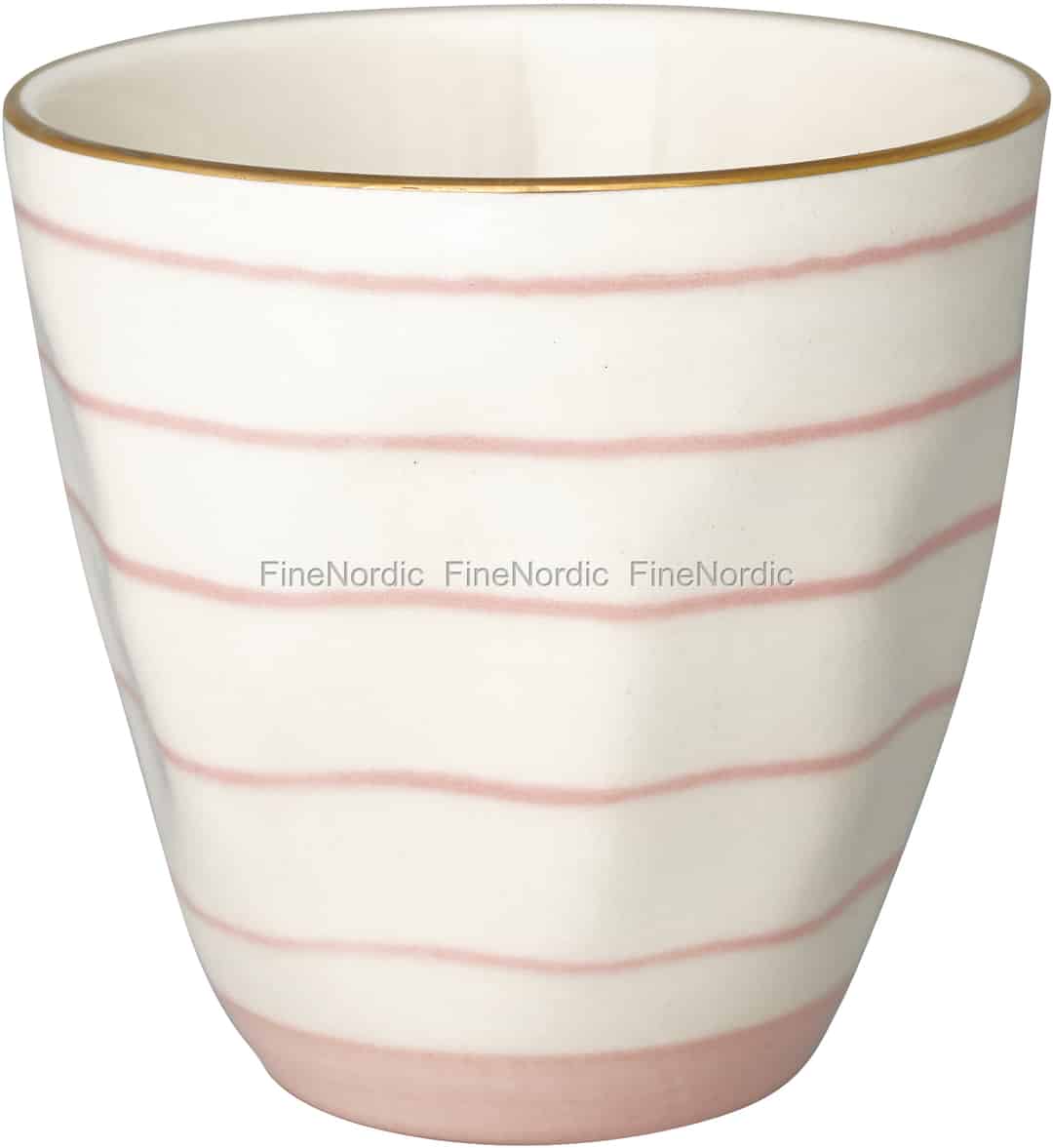 Diese hübsche Tasse ist eine tolle Kombination aus schönen Farben und Design. Die hellrosa Streifen heben sich auf dem hellen Hintergrund der Tasse hervor und der goldfarbene Rand vervollständigt diese Schönheit. Die Streifen dieser Tasse wurden von Hand gemalt, so keine Tasse genauso ausschaut wie die nächste. Sie können 250 ml Ihres Lieblingsgetränks in diese Tasse füllen. Sie können damit auch Ihren Gästen Gemüsestängelchen oder Salzstangen servieren. Die Sally Pale Pink mit Gold Tasse ist henkellos, aber bringt eine extra Portion Charme und gutes Aussehen mit. Wenn Ihnen das Design der Tasse gefällt, dann werfen Sie doch gerne auch einen Blick auf die anderen GreenGate Sally Pale Pink Geschirrprodukte, die wir in unserem Webshop anbieten.