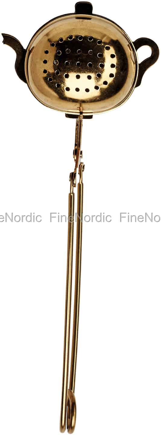 Machen Sie an einem hektischen Tag doch mal eine kleine Pause und genießen Sie eine Tasse Tee. Alles, was Sie tun müssen, ist, dieses GreenGate Teekanne Teesieb mit etwas von Ihrem bevorzugten losen Tee zu füllen, ihn in eine Tasse zu geben und etwas heißes Wasser darüber zu gießen. Dann einfach ein paar Minuten ziehen lassen und schon ist der Tee fertig. Dieses goldfarbene Teeksieb besteht aus Metall und hat die Form einer entzückenden kleinen Teekanne. Das Teesieb ist an einem langen Henkel befestigt, sodass Sie es leicht in jede Größe Tasse legen können. Kaufen Sie es doch zusammen mit losem Tee, welchen wir auch in unserem Webshop anbieten, und schon ist es ein schönes Geschenk für einen Teeliebhaber.