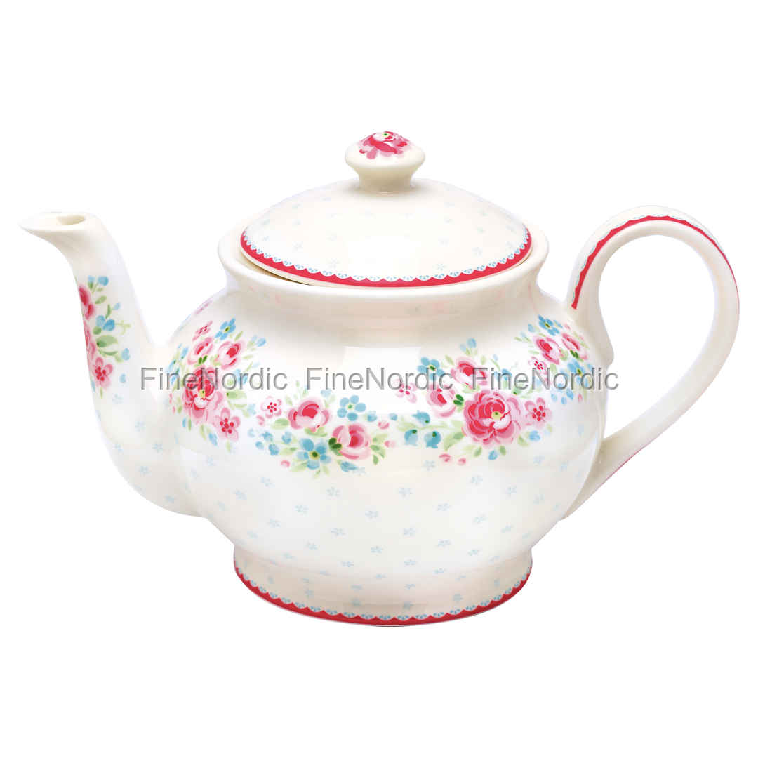 GreenGate Teekanne Stoneware Teapot Round Tess White