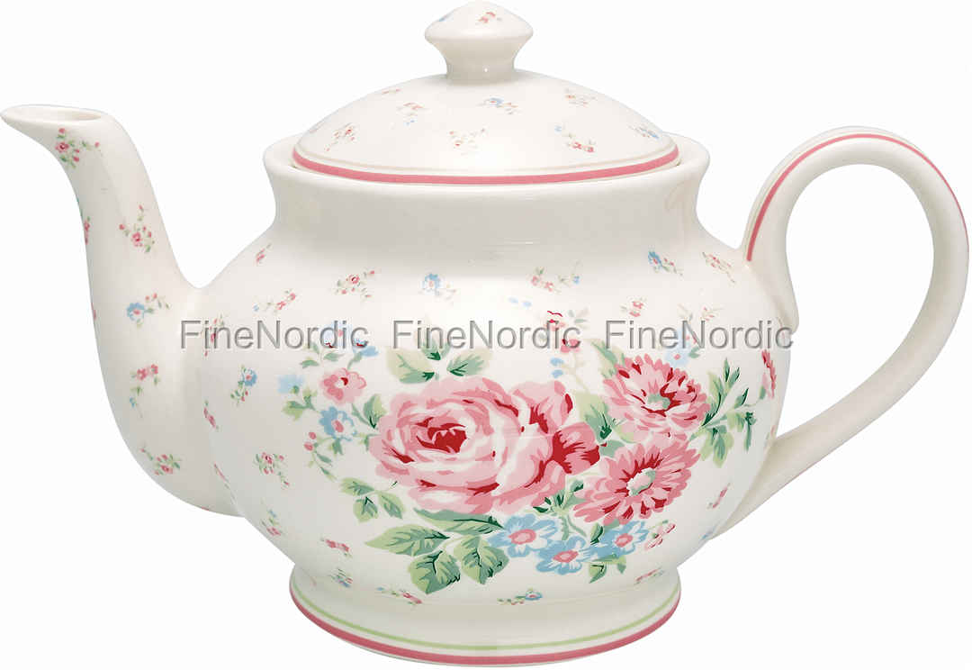 Die in nostalgischen Stil gehaltene Teekanne Marley White von GreenGate erinnert einen an die guten alten Zeiten. Die runde Teekanne mit Deckel ist dank des klassischen GreenGate Blumenmusters nicht nur wunderschön anzusehen, sondern der große Henkel sorgt dazu dafür, dass das Einschenken von heißen Getränken zum Kinderspiel wird. Die attraktiven Pastellfarben, des romantischen Blumenmotivs aus vergangenen Zeiten, könnte man farblich nicht besser kombinieren. Die Teekanne sorgt für einen erfreulichen Anblick auf dem Tisch und kann wunderbar mit anderen Geschirrteilen der Marley White Serie oder aber anderen pastellfarbenen Alice Serien von GreenGate kombiniert werden. Ein weiteres Meisterwerk aus dem Hause GreenGate.