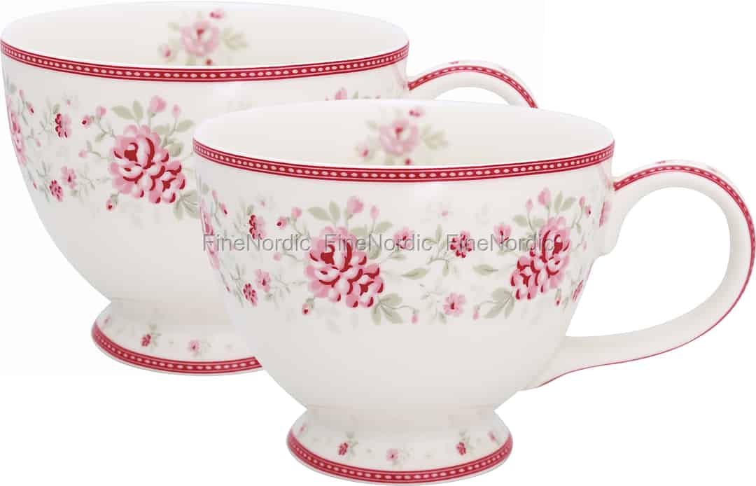 Was gibt es Schöneres, als eine heiße Tasse Tee zu genießen? Ganz einfach, eine Tasse Tee zusammen mit einem Freund zu genießen. Genau dafür ist dieses zweiteilige Flora Vintage Teetassenset perfekt. Jede Tasse fasst ganze 400 ml Ihres Lieblings-Heißgetränks und das wunderschöne Flora Vintage Muster ist das i-Tüpfelchen des Tassensets. Es sind die perfekten Teetassen für einen kalten Winterabend und auch für das ganze Jahr über. Das Flora Vintage Teetassenset von GreenGate ist eine schöne Geschenkidee für ein teeliebendes Paar.