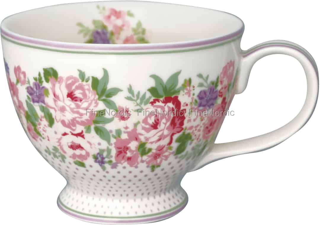 Die GreenGate Rose White Teetasse ist ein wahrer Traum für jemanden der die schönen traditionellen Blumenmuster liebt, für die GreenGate so bekannt ist. Die Teetasse hat ein Fassungsvermögen von 400 ml und ist sowohl für die Spülmaschine als auch für die Mikrowelle geeignet. Der große Griff, das verführerische Blumendesign kombiniert mit einem violetten Punktmuster, machen diese Teetasse wahrlich unwiderstehlich. Gießen Sie sich doch einfach Ihren Lieblingstee ein, finden Sie einen bequemen Platz auf dem Sofa und genießen Sie ein paar entspannende Minuten. Die GreenGate Teetasse Rose White ist auch eine wunderbare Geschenkidee für einen wahren GreenGate Fan.
