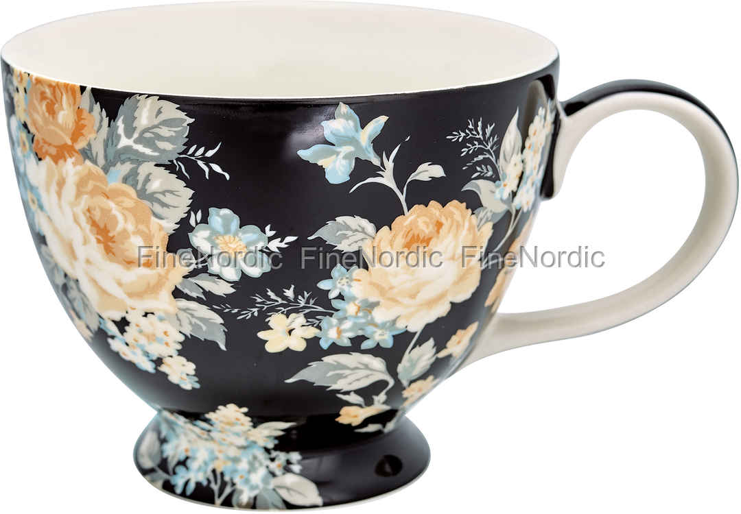 Das pastellfarbene Josephine Black Blumenmuster kommt auf der schwarzen Teetasse ganz besonders schön zur Geltung. Die Tasse ist rundherum mit zarten Rosen und anderen hübschen Blümchen geschmückt welche einen wunderbaren Kontrast zur hellen, einfarbigen Tasseninnenseite bieten. Tee und natürlich auch viele andere Heißgetränke kann man mit dieser kapazitätsreichen Henkeltasse auf schönste Art und Weise genießen. Wenn Ihnen das Josephine Black Muster genauso gut gefällt wie uns, dann schauen Sie sich gerne auch mal die anderen Porzellan- wie auch Textilwaren an, die wir mit dem gleichen atemberaubenden Muster in unserem Webshop anzubieten haben. Die Josephine Black Produkte können bestens miteinander, aber auch mit anderen GreenGate Serien kombiniert werden.