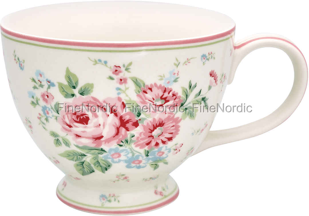 Mit Marley White ist GreenGate eine weitere Schönheit, in beliebten, klassischen GreenGate Stil, gelungen. Das bezaubernde Rosen- und Blumenmuster, die perfekte Abstimmung der Farben und die stilvolle Form sorgen dafür, dass die Marley White Teetasse schnell zu der neuen Lieblingstasse erkoren wird. Denn die Tasse ist nicht nur eine Augenweide, da passt auch richtig viel rein. Ganze 400 ml um genau zu sein, so erspart man sich das viele Hin-und-Her Laufen zur Kaffeemaschine. Die Teetasse Marley White lässt sich wunderbar mit dem anderen Geschirr der Marley White Serie kombinieren und zusammen mit einfarbigem GreenGate Geschirr bietet sie einen entzückenden Kontrast.