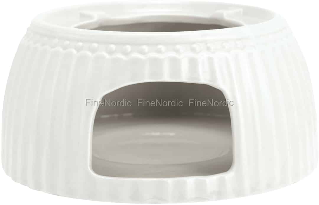 Der Alice White Teewärmer von GreenGate zeichnet sich durch zeitlose Eleganz und seinem dennoch schlichten Erscheinungsbild aus. Das einfarbige weiße Stövchen ist an seiner Außenseite mit dem bekannten Alice Relief geschmückt. Auf der einen Seite befindet sich eine große Öffnung, durch das Sie dem Stövchen ein Teelicht beifügen können. Stellen Sie dann einfach die Alice White Teekanne obendrauf und der Teewärmer hält den Tee für Sie warm. Sie können ihn zusammen mit den anderen Alice White Geschirrteilen sowie mit der Stoneware aus vielen anderen GreenGate Serien verwenden. Das Aussehen dieses Stövchens wird nie aus der Mode kommen, denn Weiß ist einfach auch eine sehr klassische und traditionelle Porzellanfarbe.
