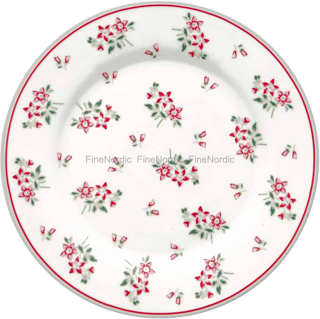 Der Avery White Teller von GreenGate ist mit einem hübschen Blumenmuster in Grau und Grün und in verschiedenen Rottönen dekoriert. Kleine verspielte Blumenpaare zieren den weißen Hintergrund des runden Tellers und er wird um seinen Rand herum von einer grauen und einer roten Linie eingerahmt. Verwenden Sie ihn für das Frühstück oder für einen kleinen Imbiss, als Snack- oder Dessertteller oder aber auch als Vorspeisenteller während eines mehrgängigen Abendessens. Sie können die Avery White Teller das ganze Jahr über verwenden und aufgrund ihrer hübschen roten und grünen Farben eignen sich diese Stoneware Teller jedoch auch hervorragend zur Weihnachtszeit.