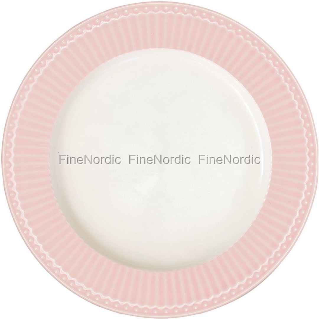 Ist es nicht mal wieder an der Zeit für einen Mädelsabend? Mit den Alice Pale Pink Tellern von GreenGate ist der Tisch ruckzuck schön und einladend gedeckt. Der große Stoneware Teller, aus der beliebten Alice Everyday Serie, ist am Tellerrand mit einem rosa Striche- und Punkterelief geschmückt und seine glatte, helle Tellermitte bietet einen schönen Kontrast zum strukturierten Rand. Der Hauptspeisenteller kann an Festtagen, sowie auch im Alltag genutzt werden. Durch sein musterloses Aussehen kann der rosa Porzellanteller beim Eindecken für ein 3-Gänge Menü, auch gut mit gemusterten GreenGate Tellern kombiniert werden. Auch als Servierteller ist er zu gebrauchen, falls Sie Ihrem Gast vor dem Essen zuerst ein paar kleine Appetitanreger reichen möchten.