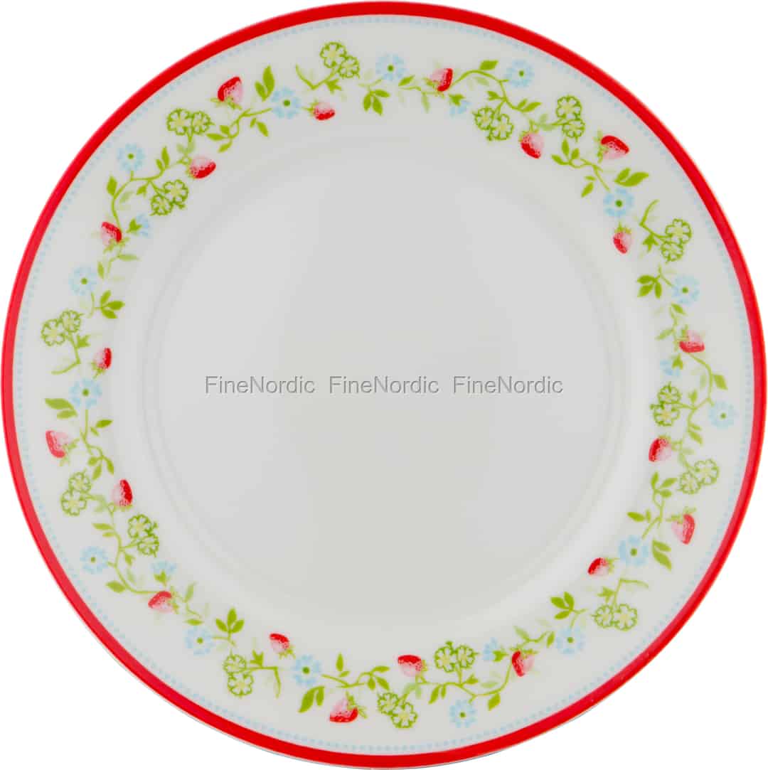 Dieser schöne GreenGate Teller ist mit einem sommerlichen Blumen- und Erdbeerdesign verziert. Das Gloria White Muster umrundet den Rand des Tellers und entlang der Kante sind auch blaue Punkte und eine rote Linie zu sehen. Genießen Sie ein Stück Kuchen, ein Sandwich oder ein Dessert von diesem attraktiven Teller. Er hat einen Durchmesser von 20,5 cm und ist spülmaschinenfest sowie mikrowellengeeignet. Wenn Sie dieses Design mögen, dann werfen Sie doch auch einen Blick auf die anderen von uns angebotenen Porzellan- und Textilprodukte mit dem gleichen attraktiven Muster. Die Gloria White Limited Edition Produkte können nur bestellt werden, solange der Vorrat reicht.