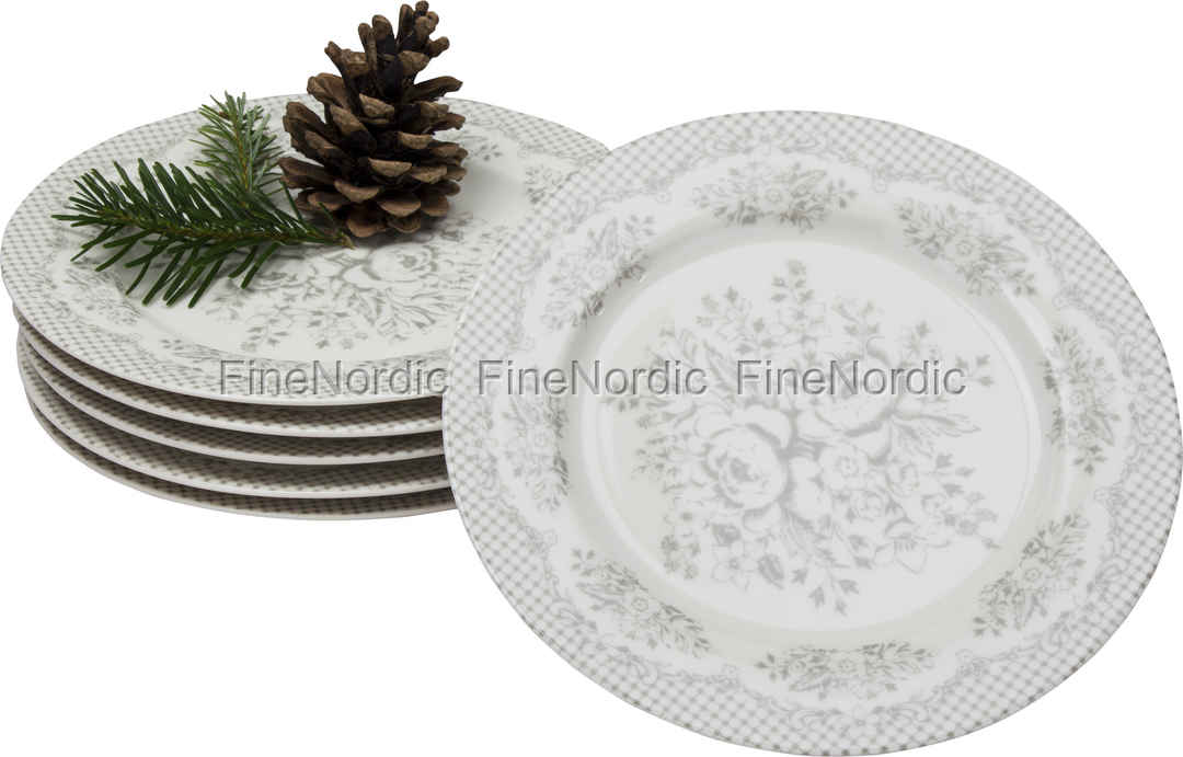 GreenGate Teller - Plate Stephanie Warm Grey 20,5 cm - 6er Set