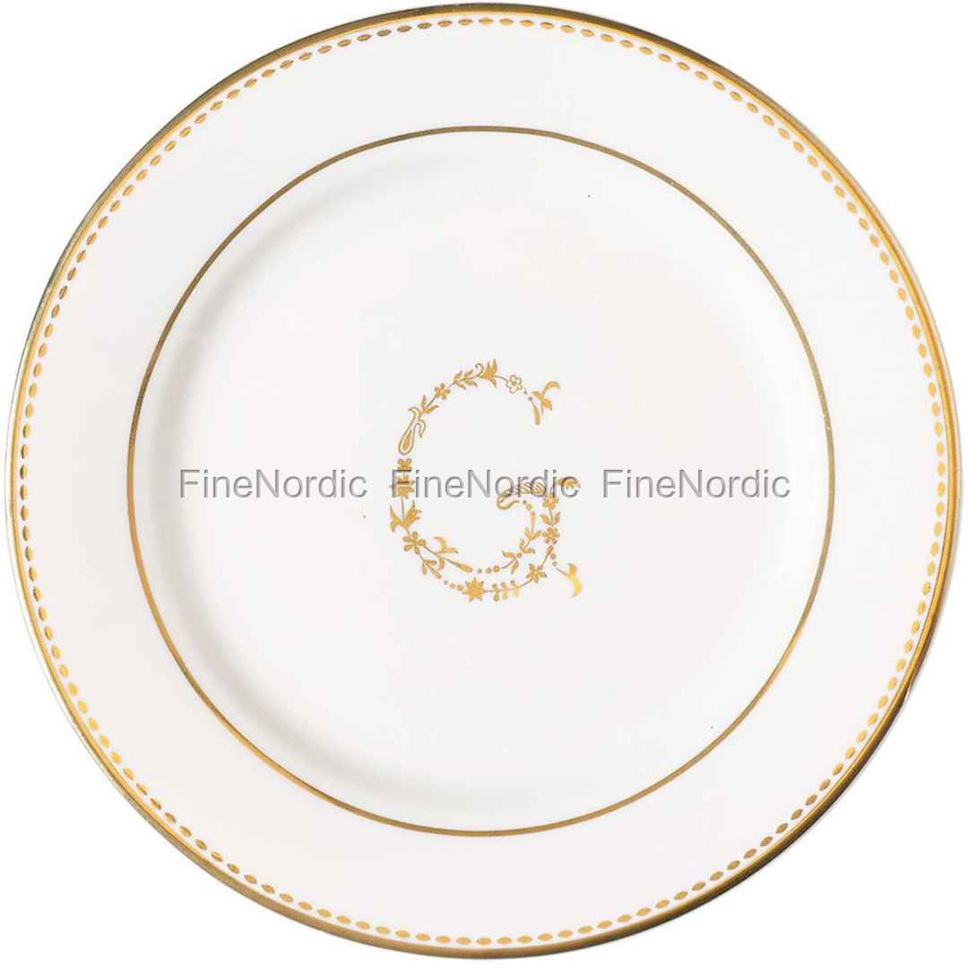 Es ist einfach eine Freude, wie elegant man seinen Gästen seinen frischgebackenen Kuchen auf diesen kleinen, goldigen GreenGate Tellern präsentieren kann. Das goldene, mit Blumenranken verschnörkelte G in der Mitte des Tellers ist einfach allerliebst und die Goldborten vervollständigen den schönen Teller.