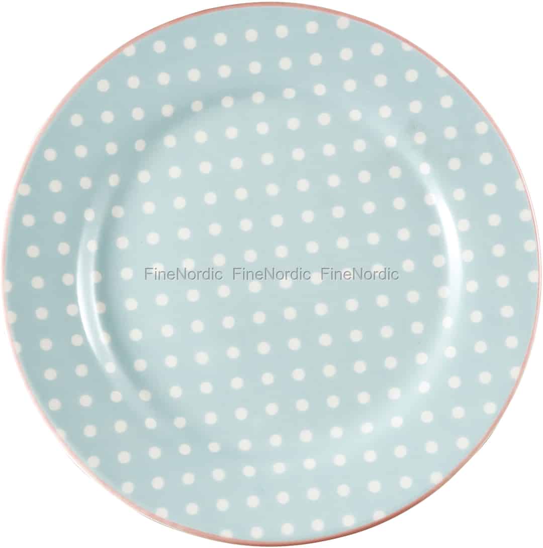 Wir mögen diesen runden GreenGate Teller Spot Pale Blue mit seinem zeitlosen weißen Tupfen Design und seinem hübschen rosa Rand wirklich sehr gerne. Der Teller hat einen Durchmesser von 20,5 cm und ist der perfekte Frühstücks- oder Kuchenteller. Kombinieren Sie ihn mit den anderen blassblauen Spot Produkten von GreenGate oder mischen Sie ihn mit andersfarbigen Produkten der GreenGate Spot Serie und schaffen Sie so einen schönen, nach Frühling aussehenden, Tisch. Der Teller ist spülmaschinen- und mikrowellengeeignet. Er passt außerdem gut zu vielen, traditionellen GreenGate Blumenmustern. Mit Produkten von GreenGate können Sie den Tisch so monochrom oder so wild und bunt gestalten, wie Sie es bevorzugen.