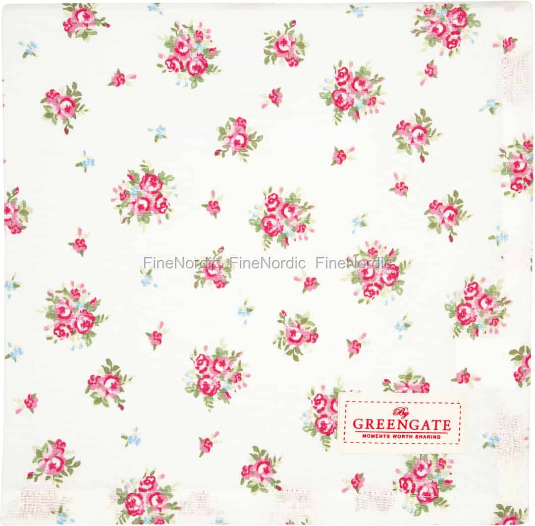Die geschmackvolle Abigail White Tischdecke von GreenGate wird von vielen Rosensträußen geschmückt, und die Farben Rot, Rosa, Blau und Grün stechen besonders hervor. Der helle Hintergrund trägt auch dazu bei, dass die Blumen besonders schön zur Geltung kommen. Auch das wohlbekannte GreenGate Label ist auf der quadratischen Baumwolltischdecke zu sehen. Nutzen Sie das Baumwolltischtuch für einen kleinen Tisch, oder Sie können es auch gut als Mitteldecke für einen größeren Tisch verwenden. Das blumige Tischtuch kann gut zusammen mit der Abigail White Stoneware genutzt werden, aber auch mit anderen Geschirrserien von GreenGate kann sie schön kombiniert werden.