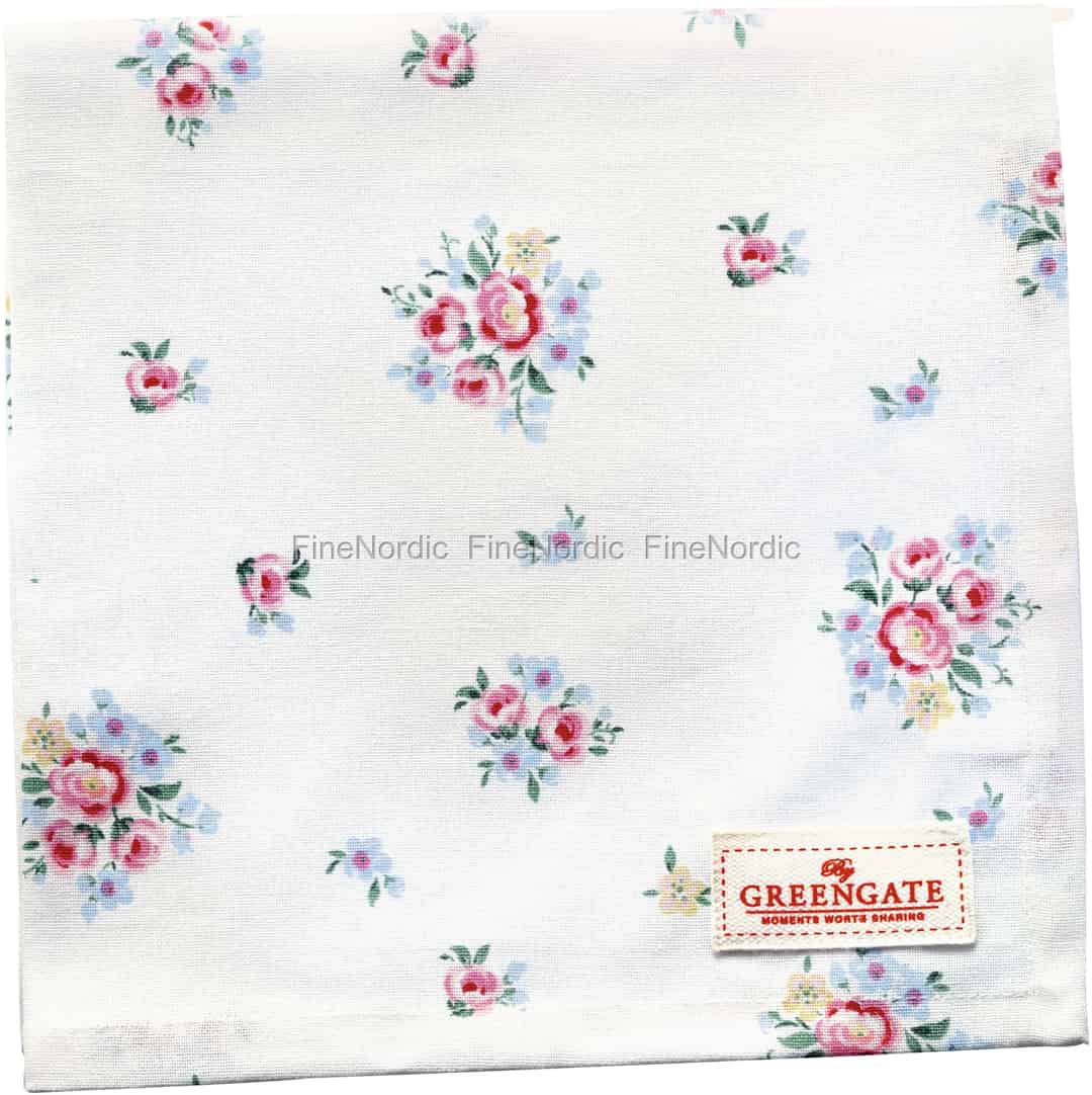 Die Nicoline White Tischdecke von GreenGate ist mit pastellfarbenen Blumensträußen geschmückt. Die quadratische Tischdecke ist 1 x 1 m groß und ist aus hochwertiger Baumwolle gemacht. Sie hübscht jeden Tisch auf, egal ob dieser in der Küche, im Esszimmer oder aber im Wohnzimmer steht. Legen Sie noch die Nicoline White Servietten und das passende Geschirr hinzu und genießen Sie Ihren schön gedeckten Tisch. Die Tischdecke ist auch in einer größeren Größe erhältlich.